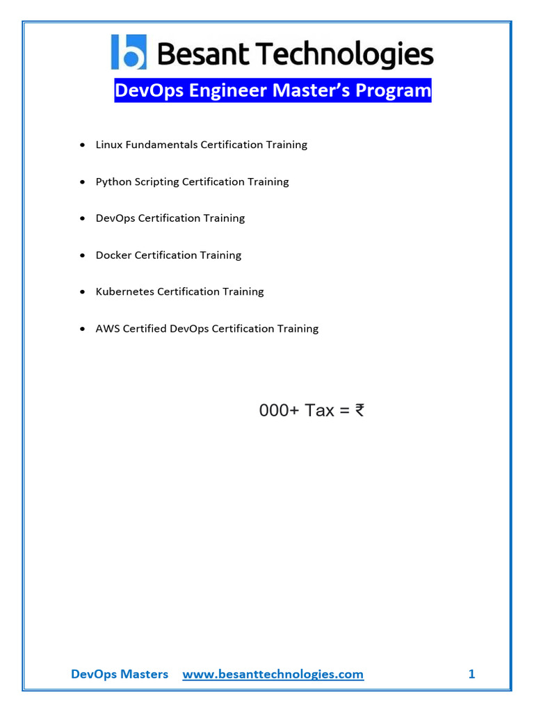 DevOps Masters www.besanttechnologies.com 1