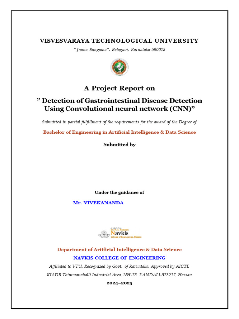 This is to certify that the project work entitled ”Detection of Gastrointestinal Disease Detection