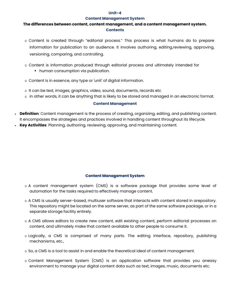 • Definition: Content management is the process of creating, organizing, editing, and publishing content.