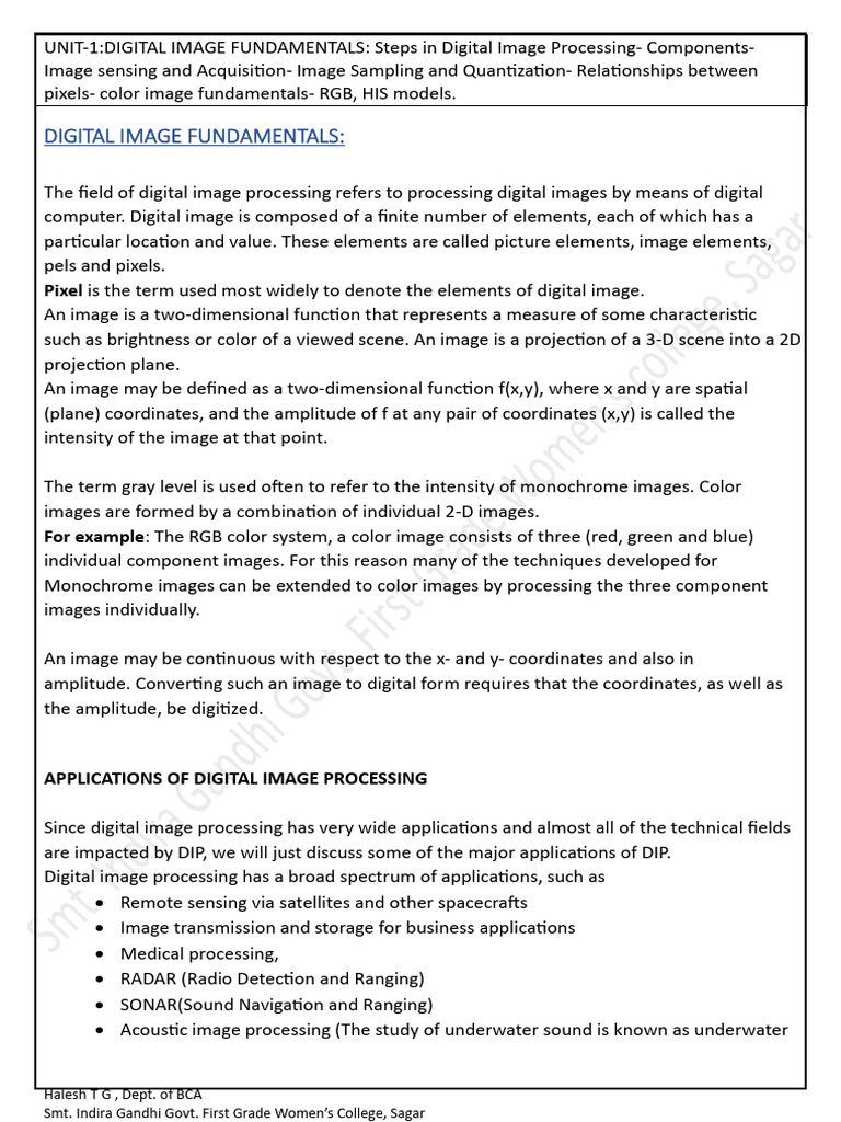 UNIT-1:DIGITAL IMAGE FUNDAMENTALS: Steps in Digital Image Processing- Components-