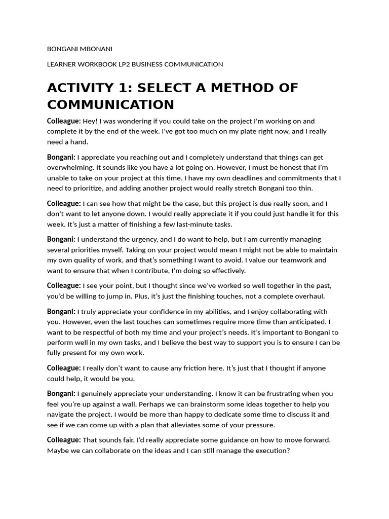 Colleague: That sounds fair. I’d really appreciate some guidance on how to move forward.