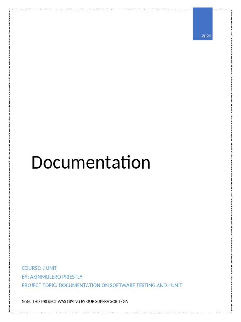 PROJECT TOPIC: DOCUMENTATION ON SOFTWARE TESTING AND J UNIT