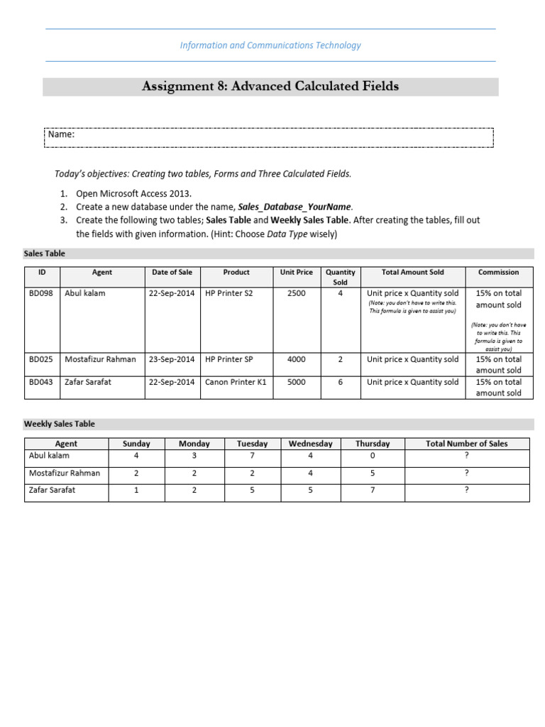 Today’s objectives: Creating two tables, Forms and Three Calculated Fields.