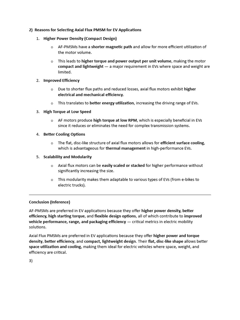 2) Reasons for Selecting Axial Flux PMSM for EV Applications