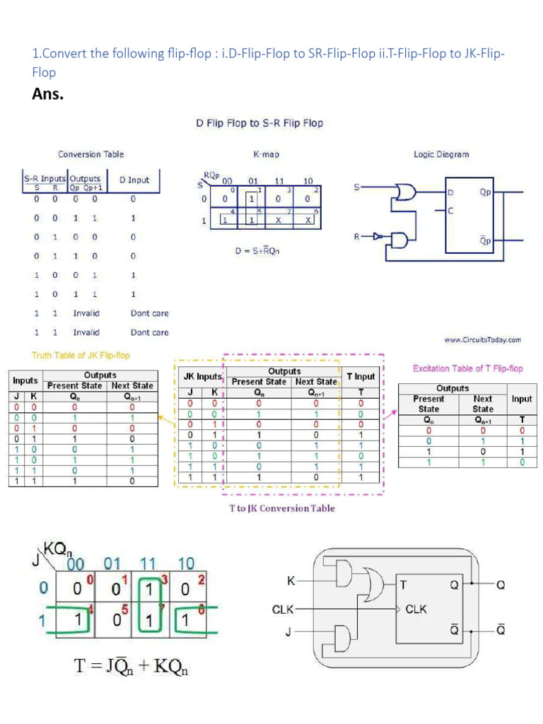 1.Convert the following flip-flop : i.D-Flip-Flop to SR-Flip-Flop ii.