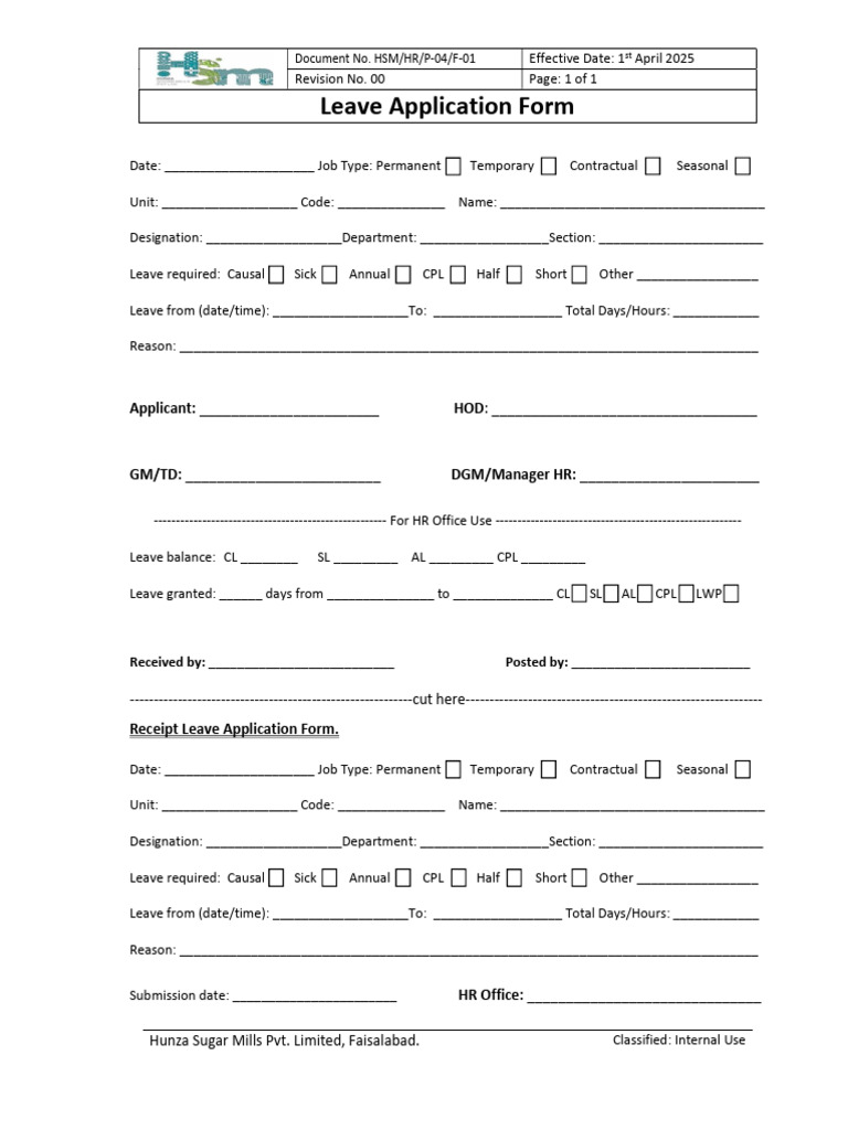 HSM/HR/P-04/F-01 Effective Date: 1st April 2025
