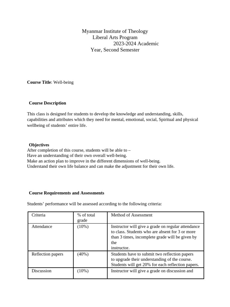 2nd May, -Introduction to the Course Definition of “Well-being”