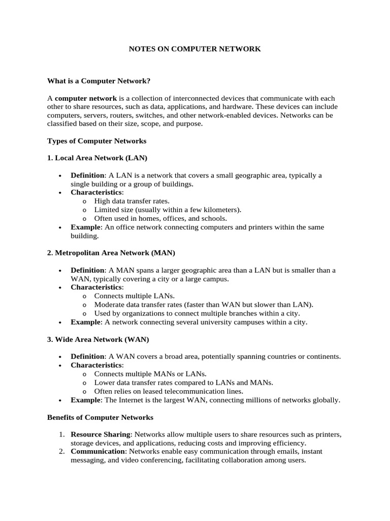 NOTES ON COMPUTER NETWORK