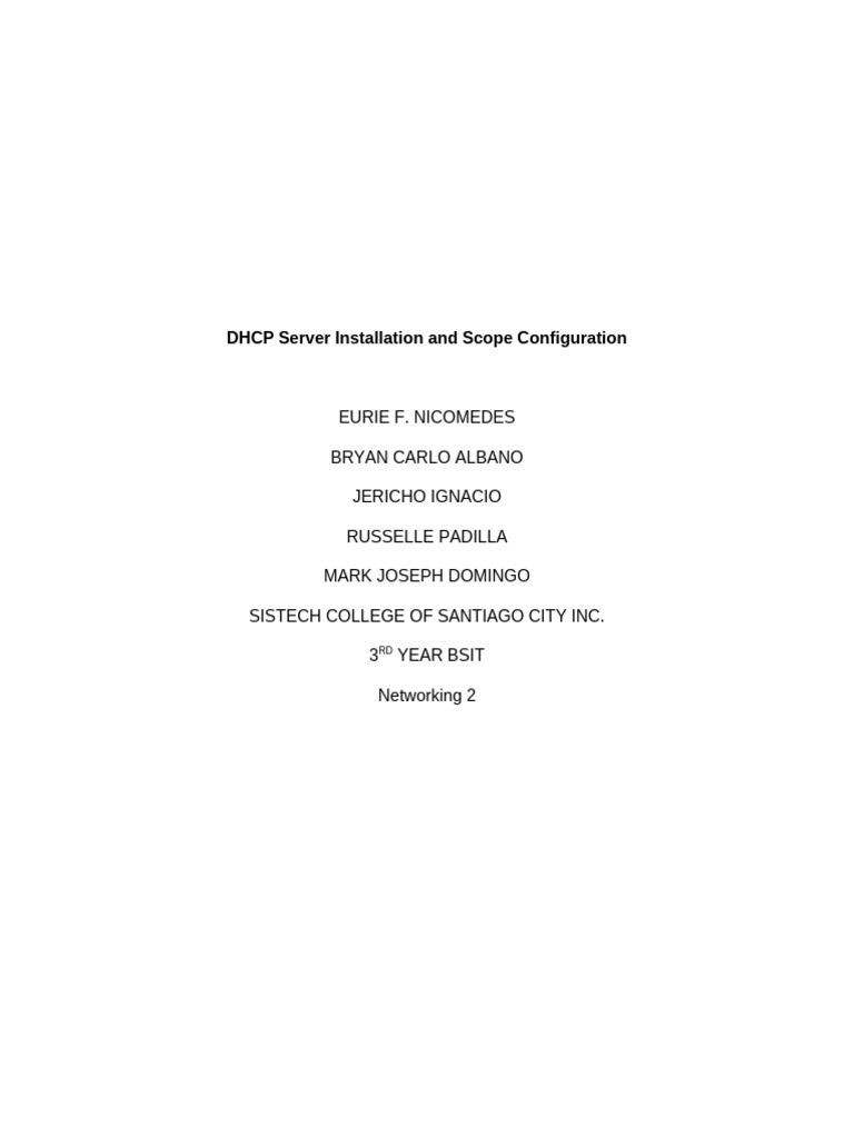 o Maintain comprehensive documentation of the DHCP server setup, including scope