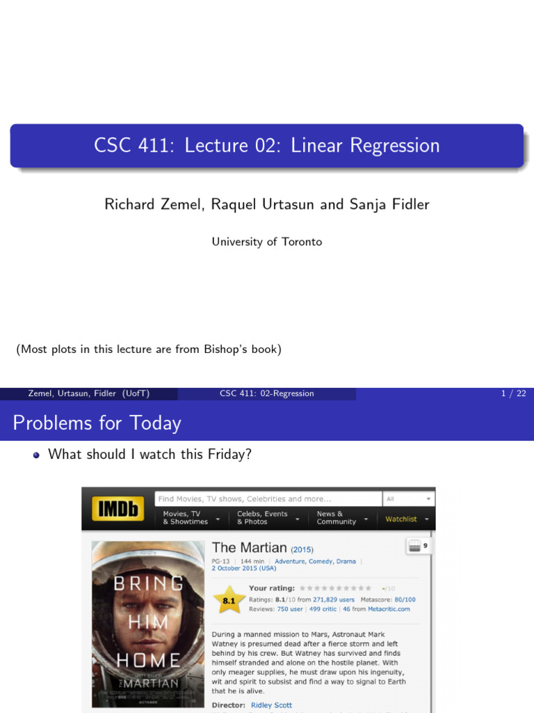 Zemel, Urtasun, Fidler (UofT) CSC 411: 02-Regression 1 / 22