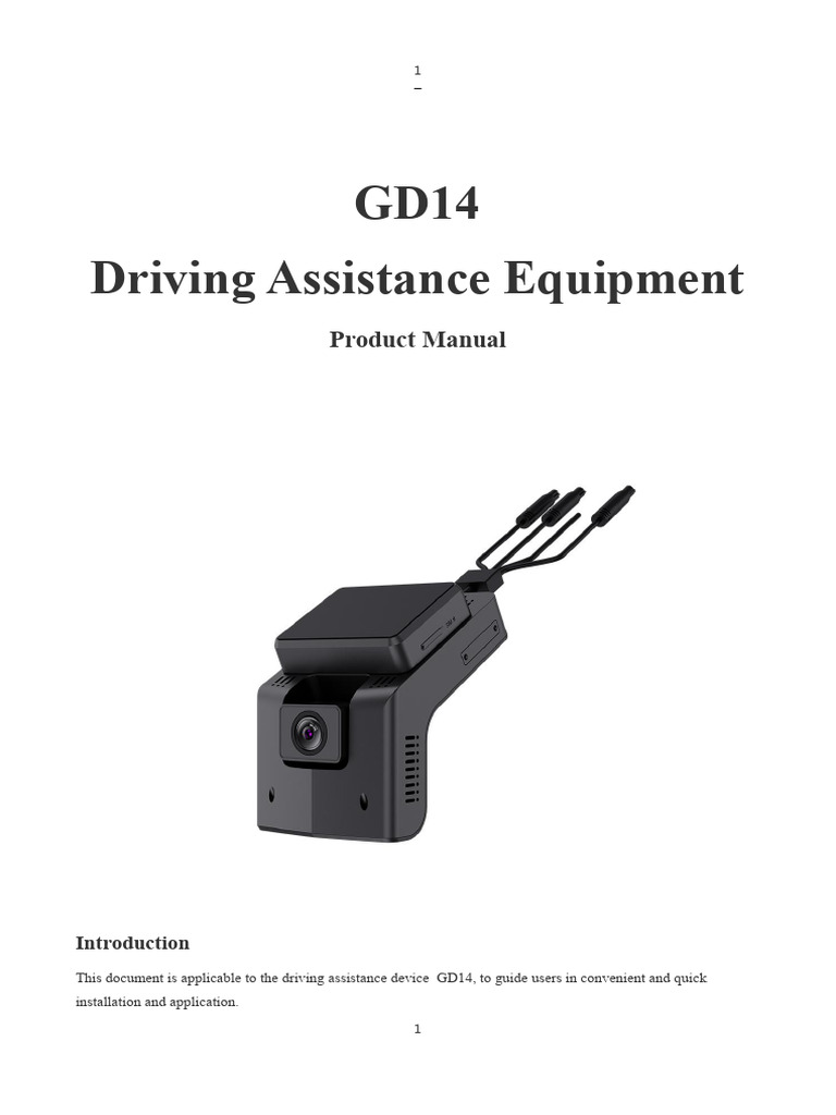 This document is applicable to the driving assistance device GD14, to guide users in convenient and quick