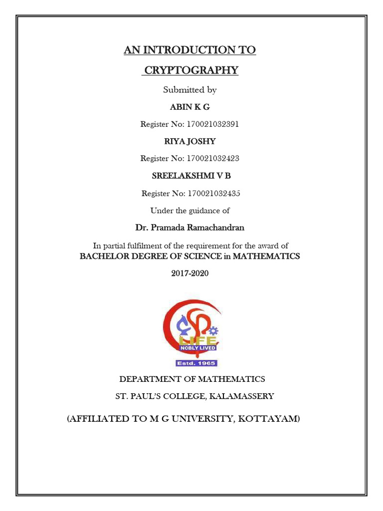 TO CRYPTOGRAPHY” submitted by SREELAKSHMI V B(Reg no.