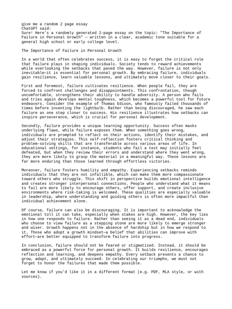 Sure! Here’s a randomly generated 2-page essay on the topic: "The Importance of