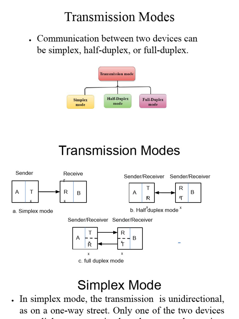 Direction of In simplex mode, the In half-duplex mode, In full-duplex mode, the