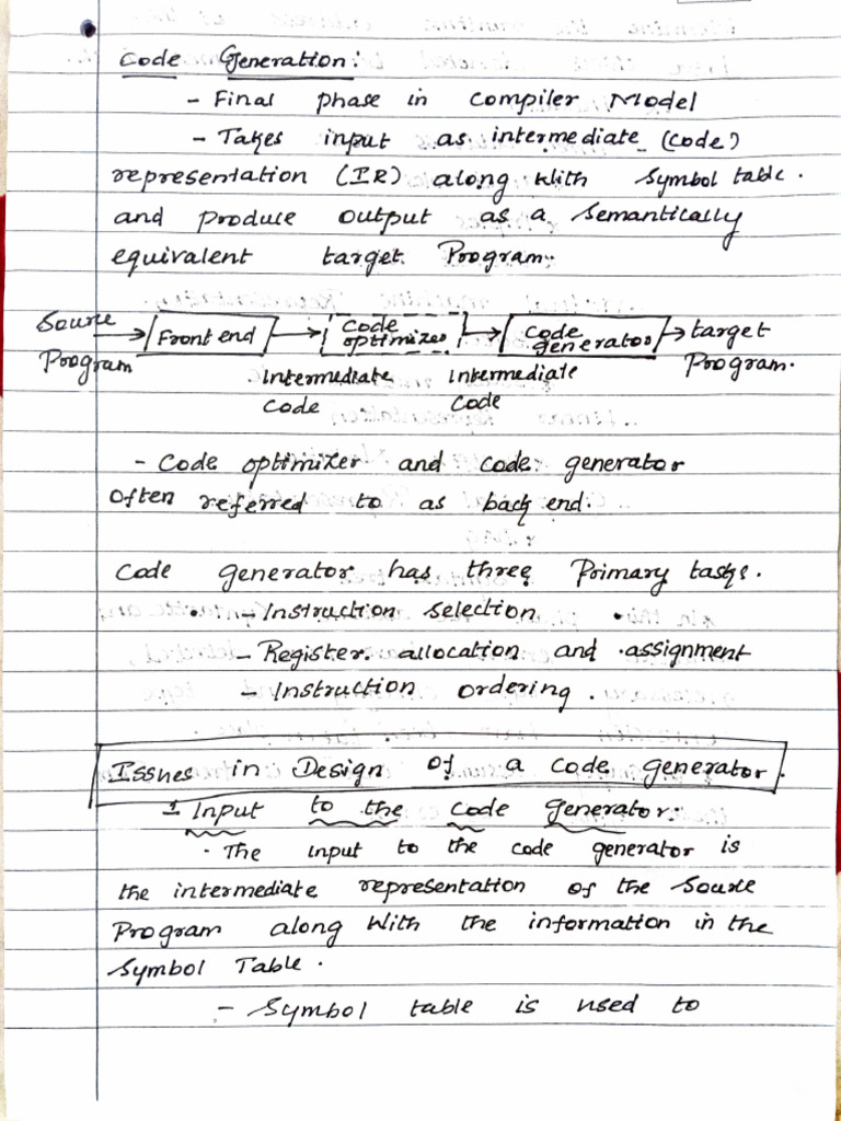 The tnput to te Code generabor i's