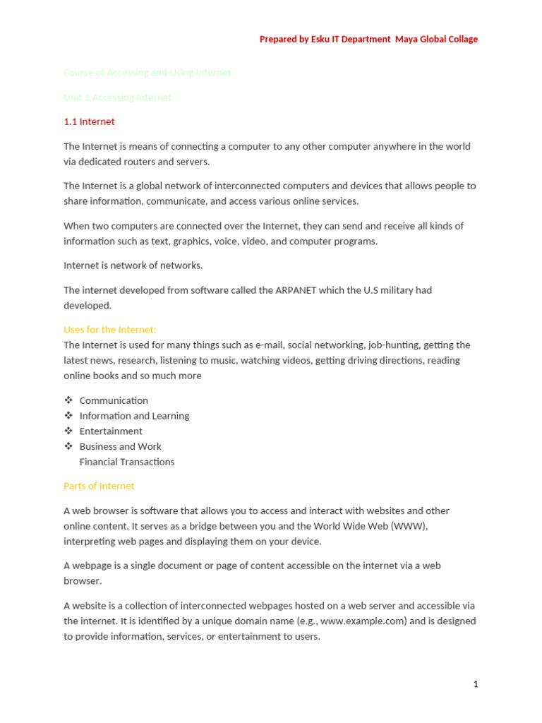 VI.Website: A website is a set of web pages consisting of text, audio and video. Web servers