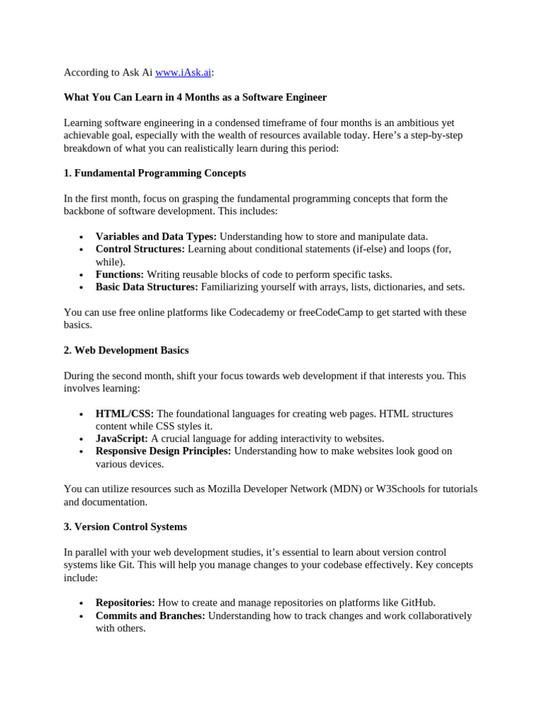By focusing on these areas of learning, aspiring software engineers can build a comprehensive