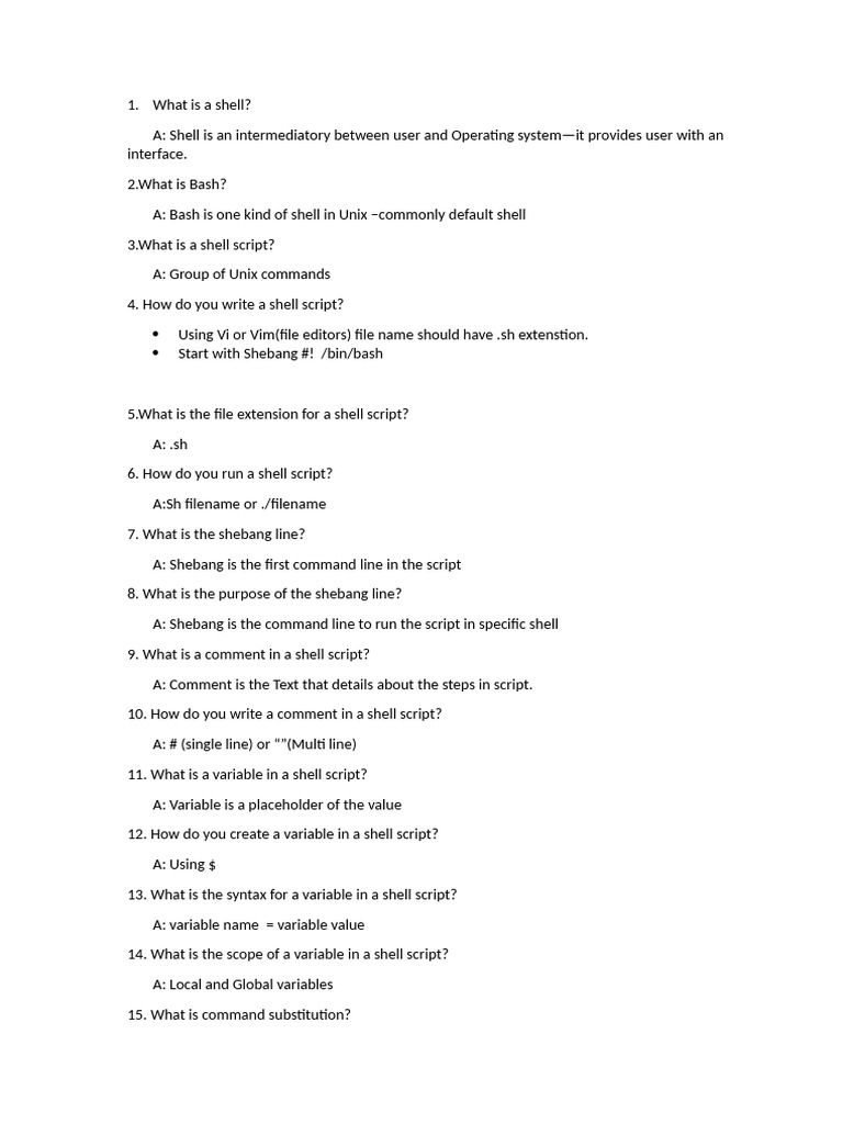 A: Shell is an intermediatory between user and Operating system—it provides user with an