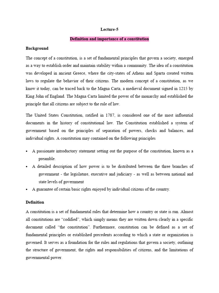 Definition and importance of a constitution