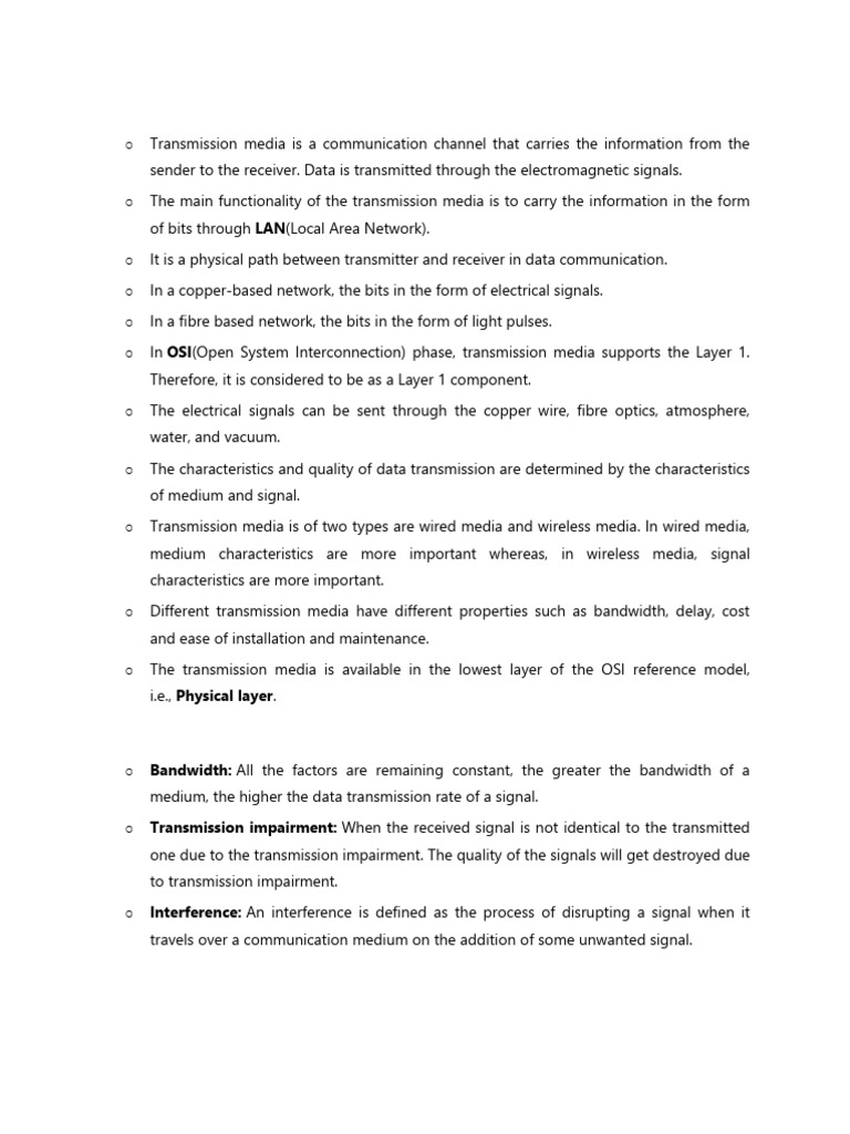 o In OSI(Open System Interconnection) phase, transmission media supports the Layer 1.