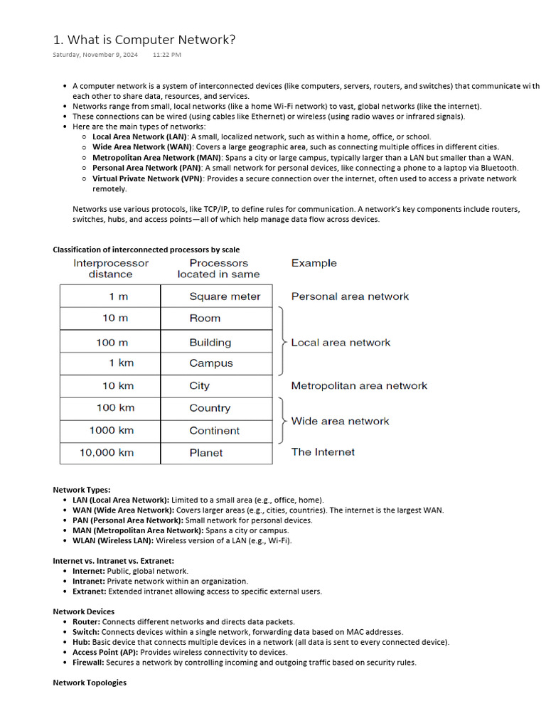 • Networks range from small, local networks (like a home Wi-Fi network) to vast, global networks (like the internet).