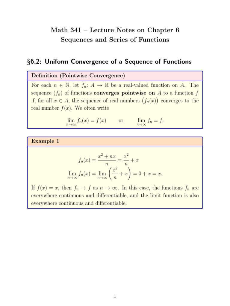 g1 , g2 , g3 , g4 , g100 where gn (x )=x n . The limit g(x) is not continuous on [0,1] .