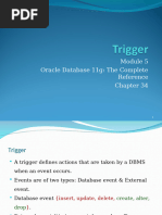 1. In Oracle PL/SQL, a trigger is a named block of PL/SQL code that is automatically executed (or "fired") in response to specific events on a particular table, view,