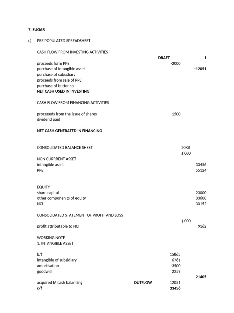 a) i) CALCULATION OF STATEMNET OF CASH FLOW