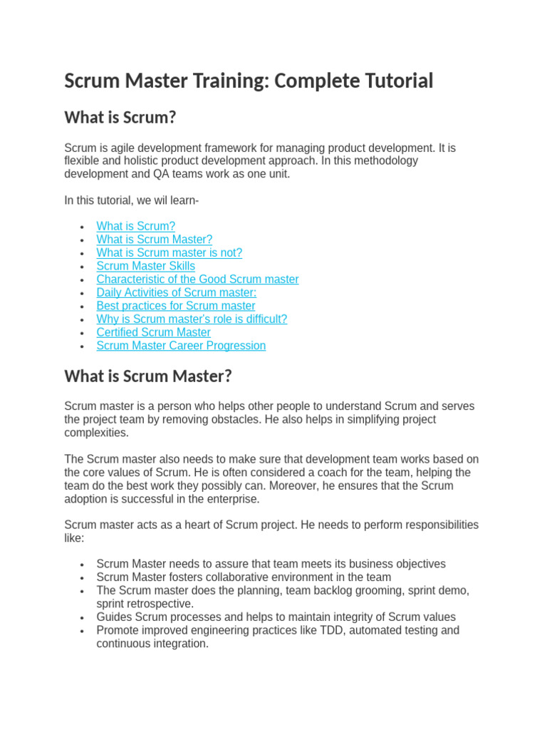 Master, one should gather advanced knowledge of Scrum best practices and how to