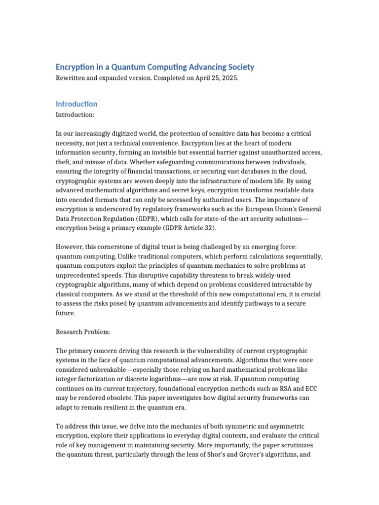The primary concern driving this research is the vulnerability of current cryptographic