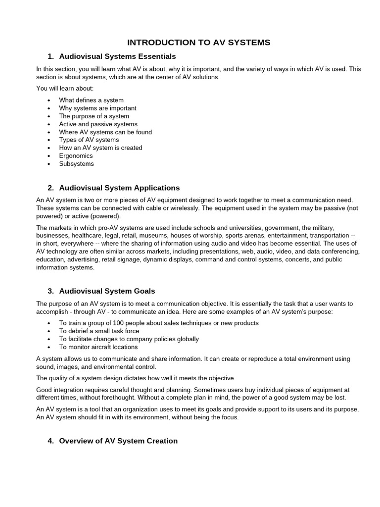 In this section, you will learn what AV is about, why it is important, and the variety of ways in which AV is used. This