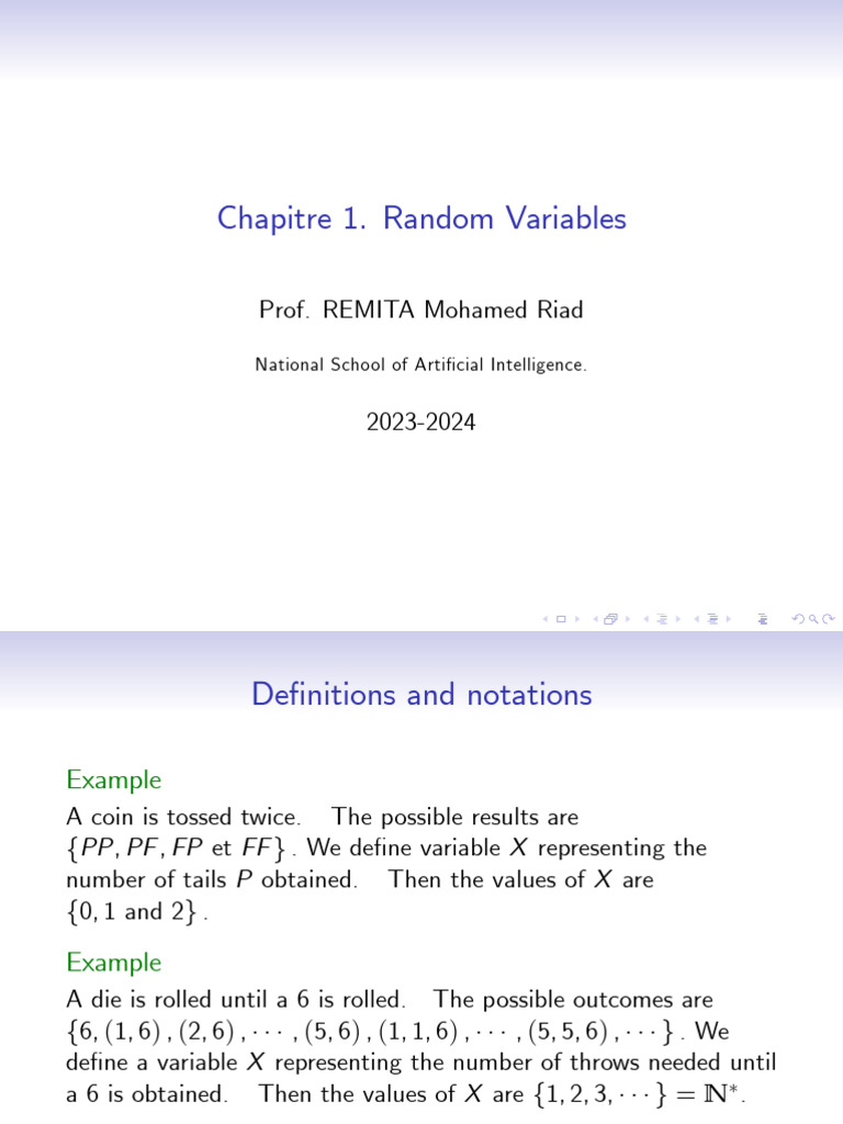 Let X be a r.r.v. de…ned on probabilized space (Ω, A, P) with