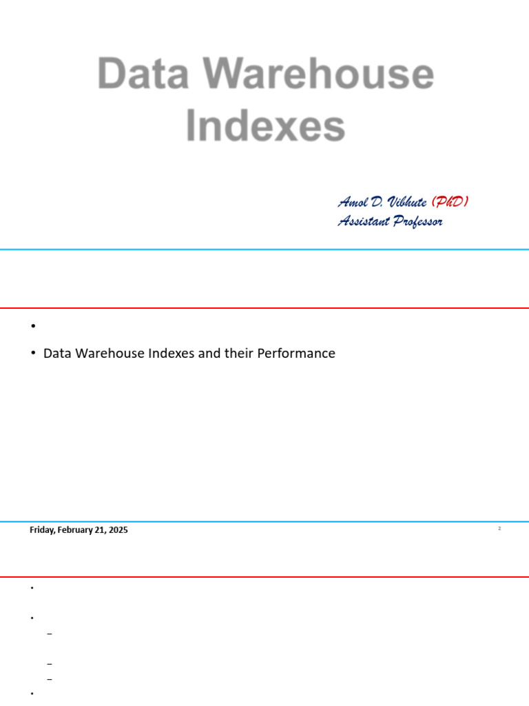 • In data warehouses, indexes are crucial for optimizing query performance, and their effectiveness is measured using