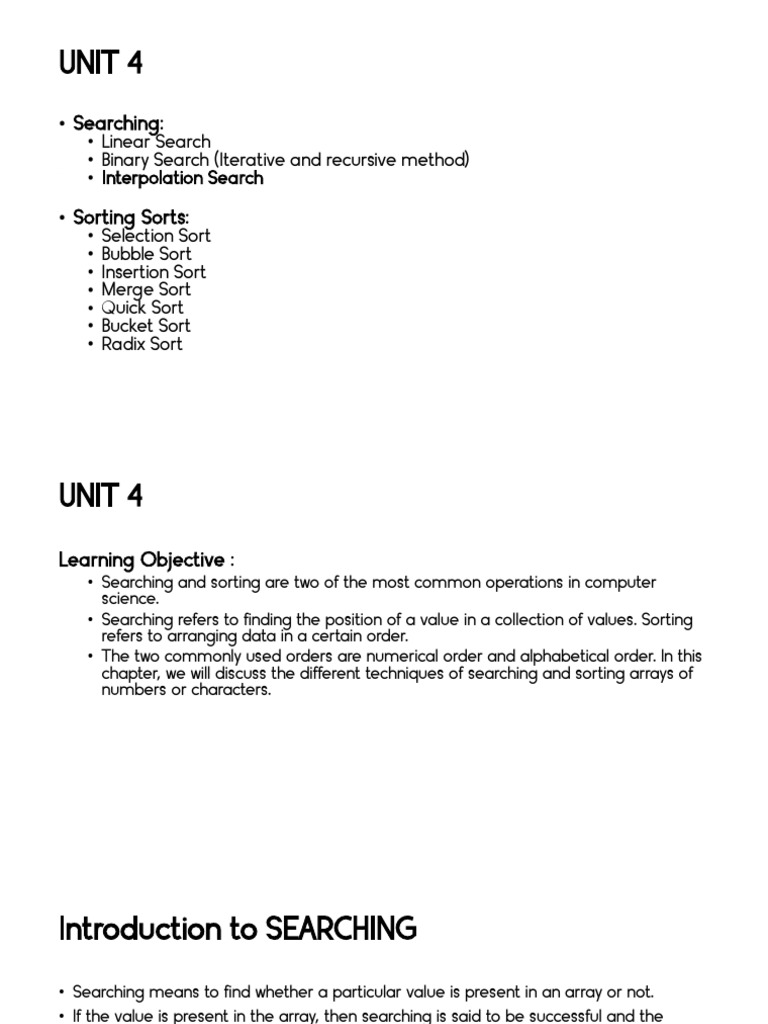 chapter, we will discuss the different techniques of searching and sorting arrays of
