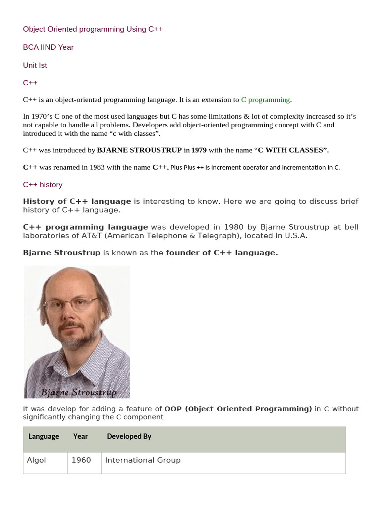 C++ was introduced by BJARNE STROUSTRUP in 1979 with the name “C WITH CLASSES”.