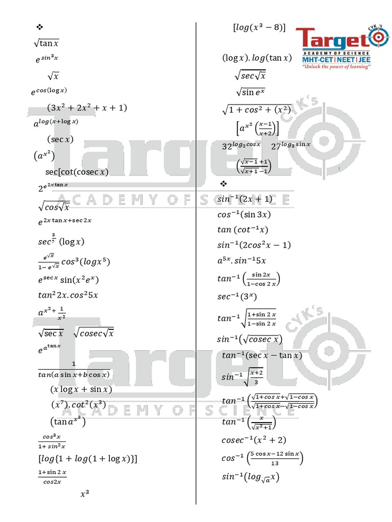 4)𝑒 𝑐𝑜𝑠(log 𝑥) 31) log √sin 𝑒 𝑥