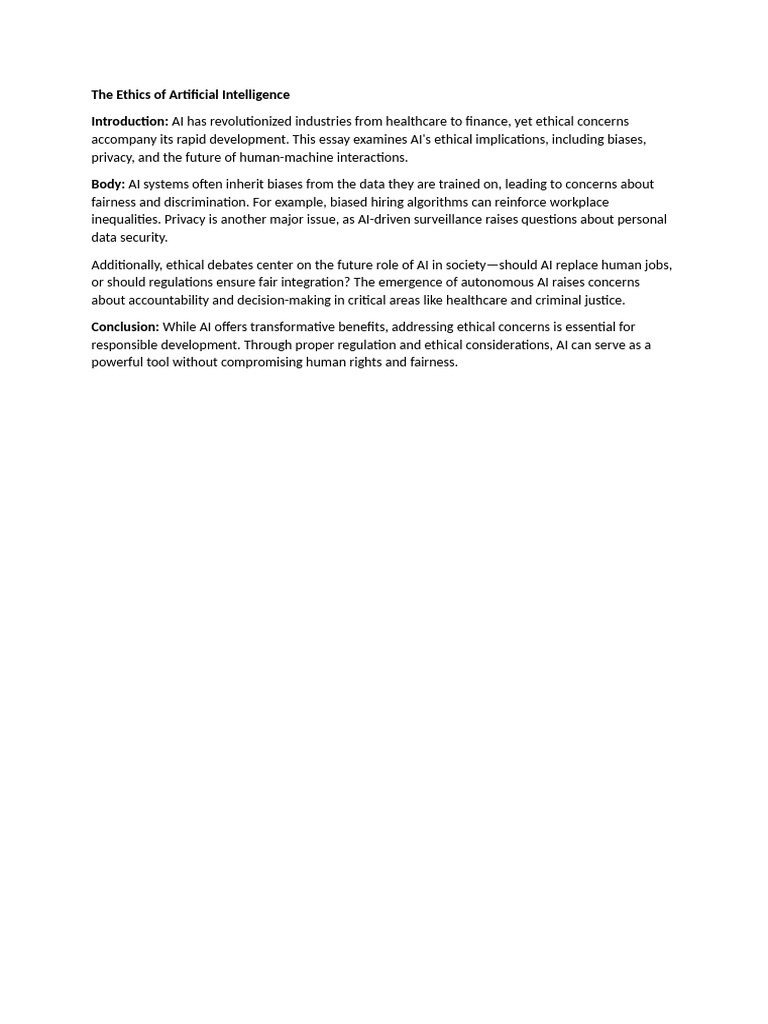 accompany its rapid development. This essay examines AI's ethical implications, including biases,