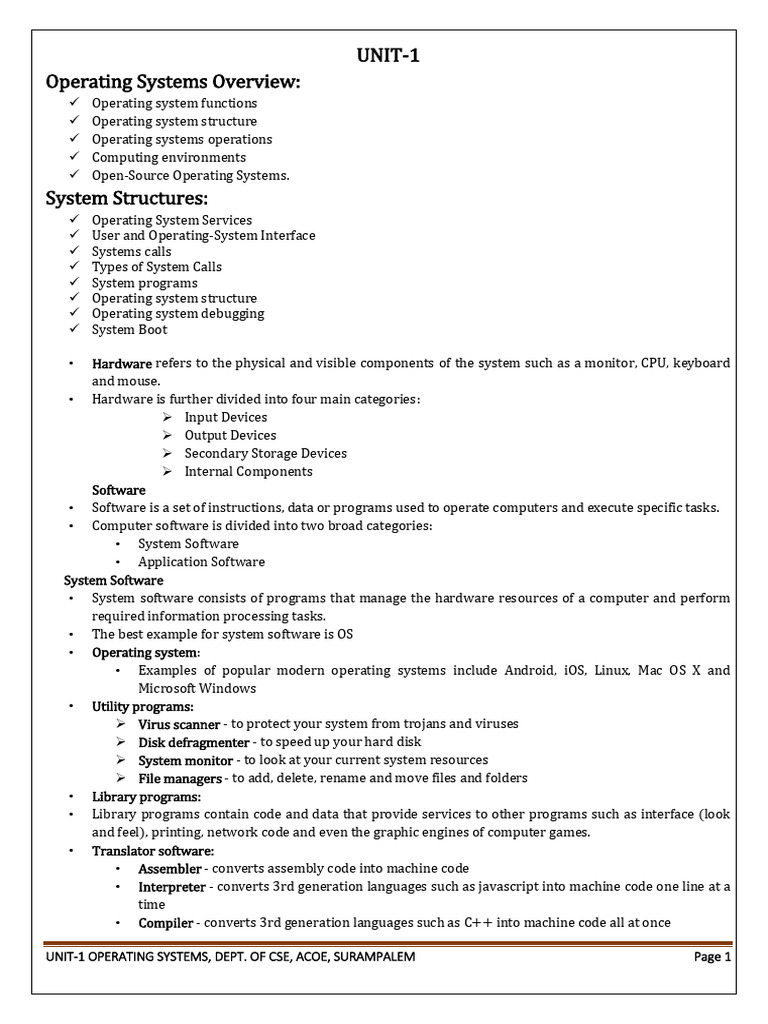 UNIT-1 OPERATING SYSTEMS, DEPT. OF CSE, ACOE, SURAMPALEM Page 2