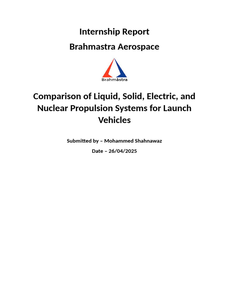 been carried out for the complete fulfilment of my internship at Brahmastra Aerospace.