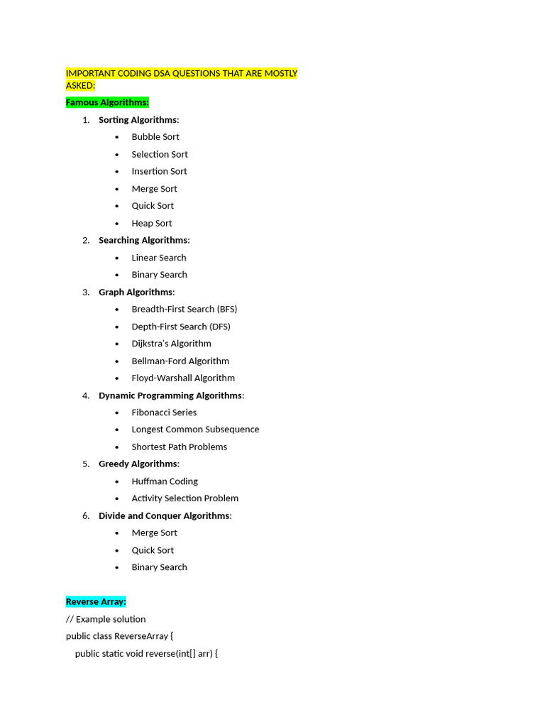 IMPORTANT CODING DSA QUESTIONS THAT ARE MOSTLY