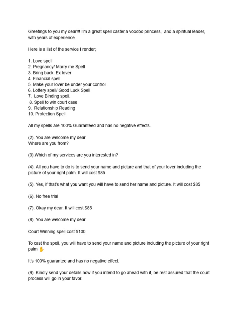 (4). All you have to do is to send your name and picture and that of your lover including the