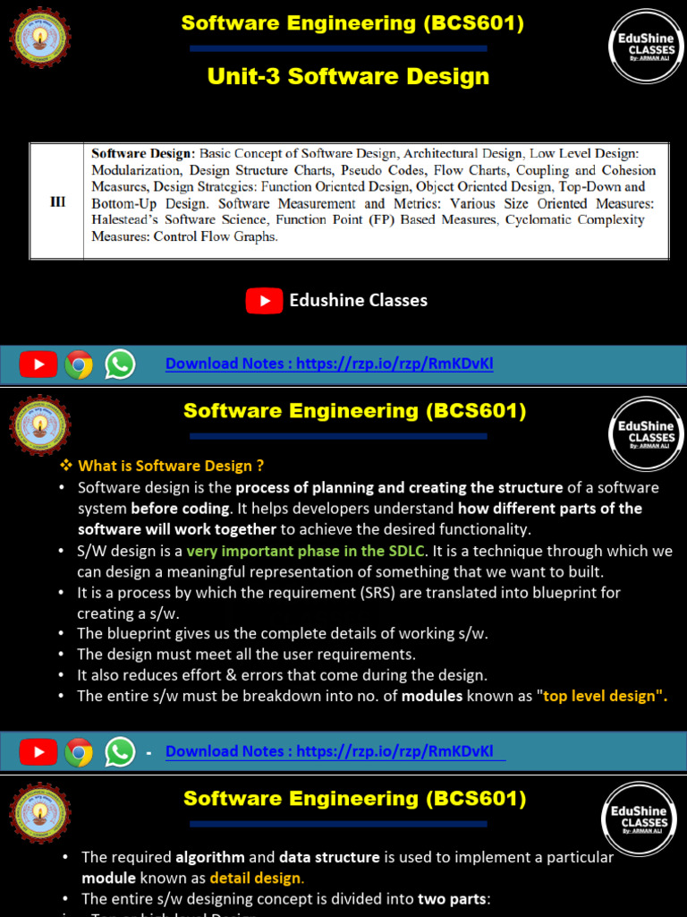 • S/W design is a very important phase in the SDLC. It is a technique through which we