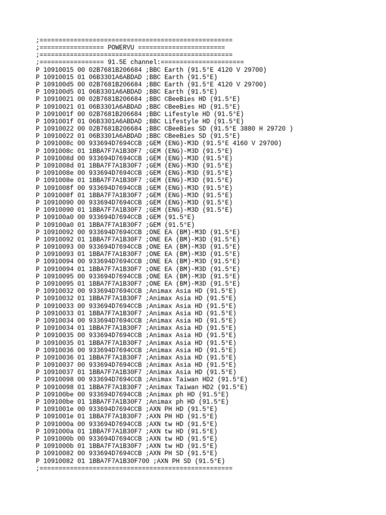 P 109100a0 01 1BBA7F7A1B30F7 ;GEM (91.5°E)