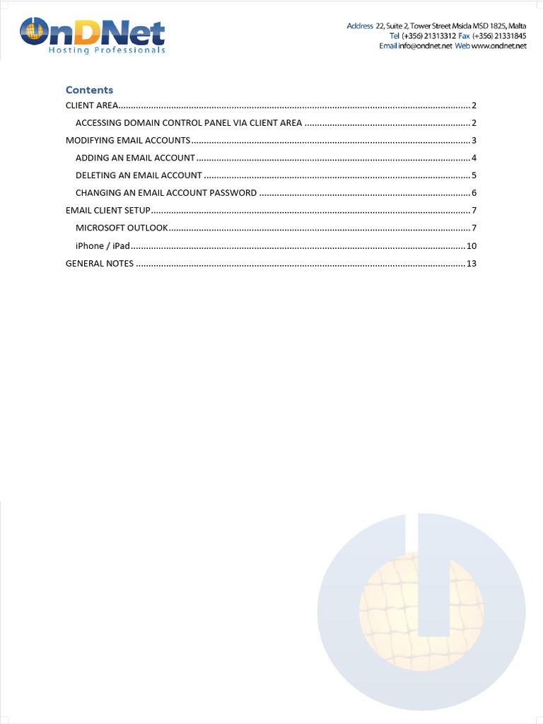 EMAIL CLIENT SETUP ............................................................................................................................... 7
