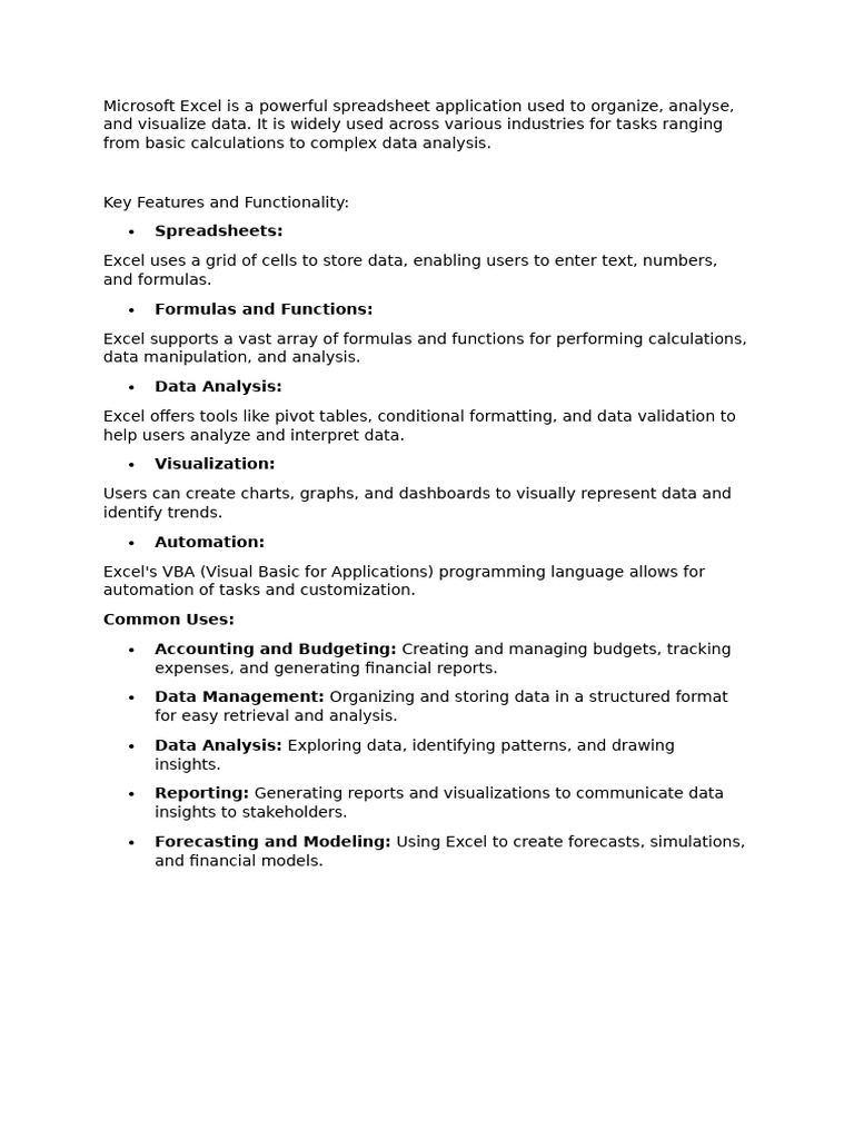 Microsoft Excel is a powerful spreadsheet application used to organize, analyse,