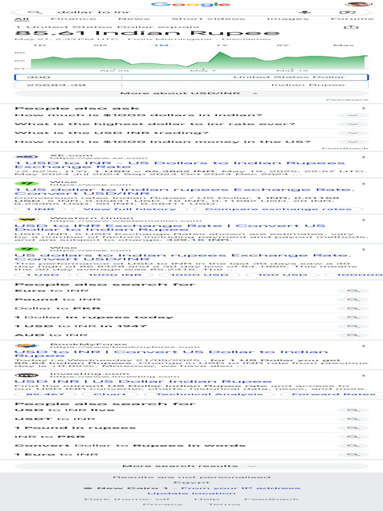 Today i.e.Wednesday 21/05/2025 , for 1 US Dollar you get
