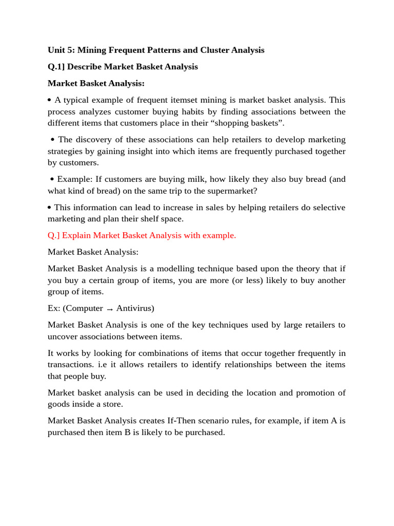 Q.] Describe association rules in mining frequent patterns and cluster analysis.