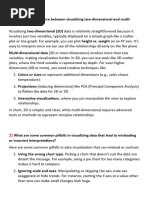 or outliers and show relationships between different dimensions. Techniques like scatter plots and paral-
