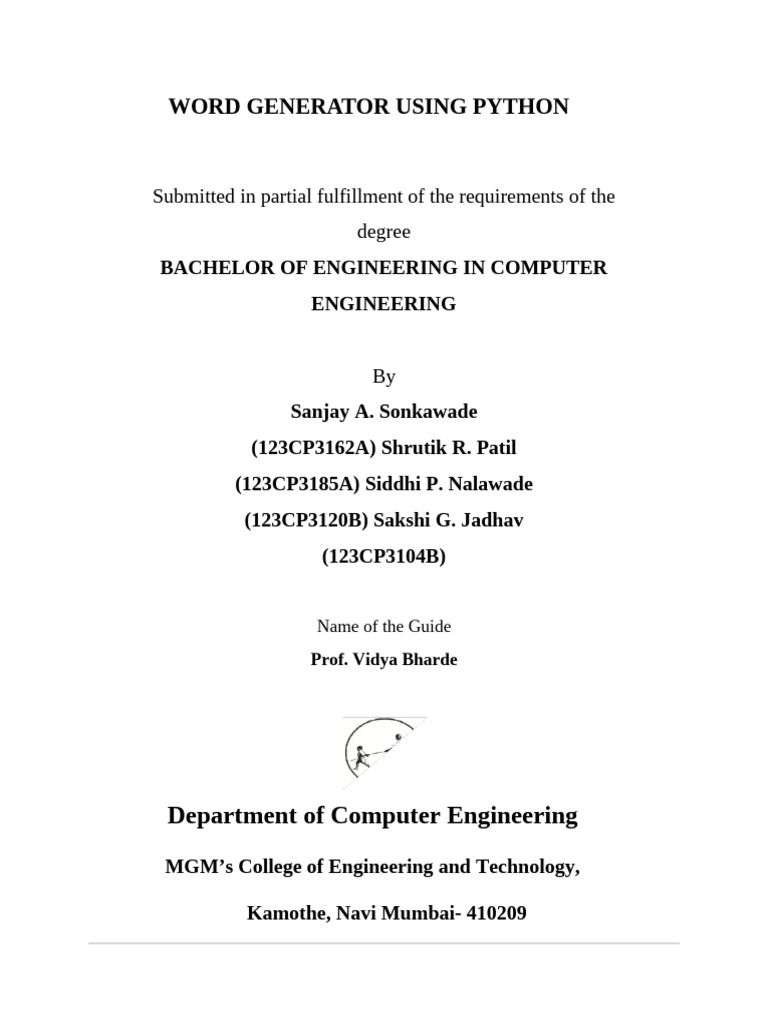 This Mini Project entitled “ WORD GENERATOR USING PYTHON” by Sanjay