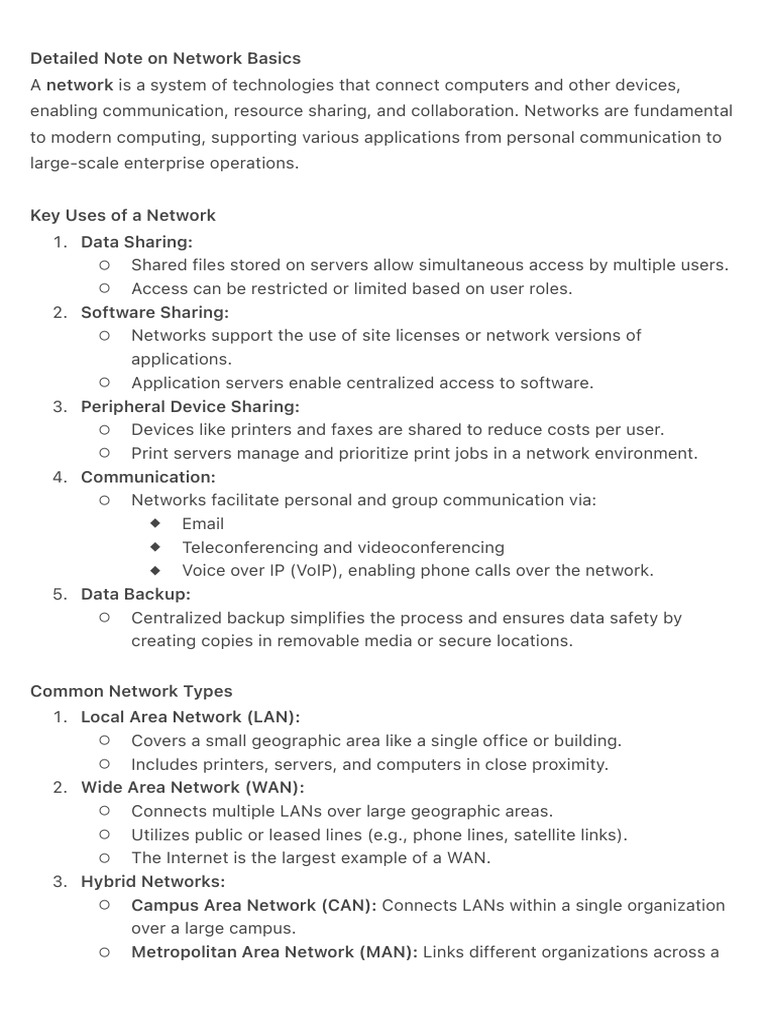 enabling communication, resource sharing, and collaboration. Networks are fundamental